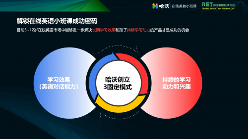 曾伶鼎在大会中提到,英语在线小班课已经到了一个临界点、一个破局点,并且与1对1不一样,这是一个能够做到真正有预期的盈利,能继续健康扩张的破局点。哈沃所有的产品、服务和教学都是围绕着能否长期服务好孩子来完成的,并一直保持着产品的核心运营逻辑。哈沃能在行业上有序发展,与其自身研发出的一套系统完整的小班课运营模式密切相关。