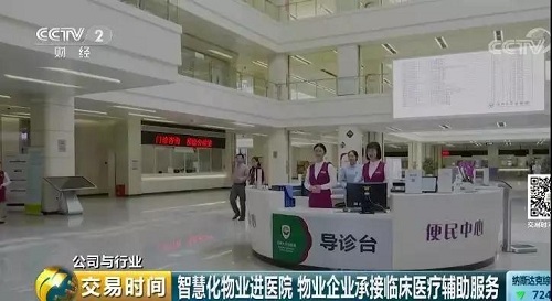 物业管理行业由此逐渐走进了大众视野、资本视野,也引起了中央电视台财经频道的重点关注。近日,中央电视台财经频道以“智慧化物业进医院”为题报道了中航物业深圳大学总医院项目的智慧物业服务。
