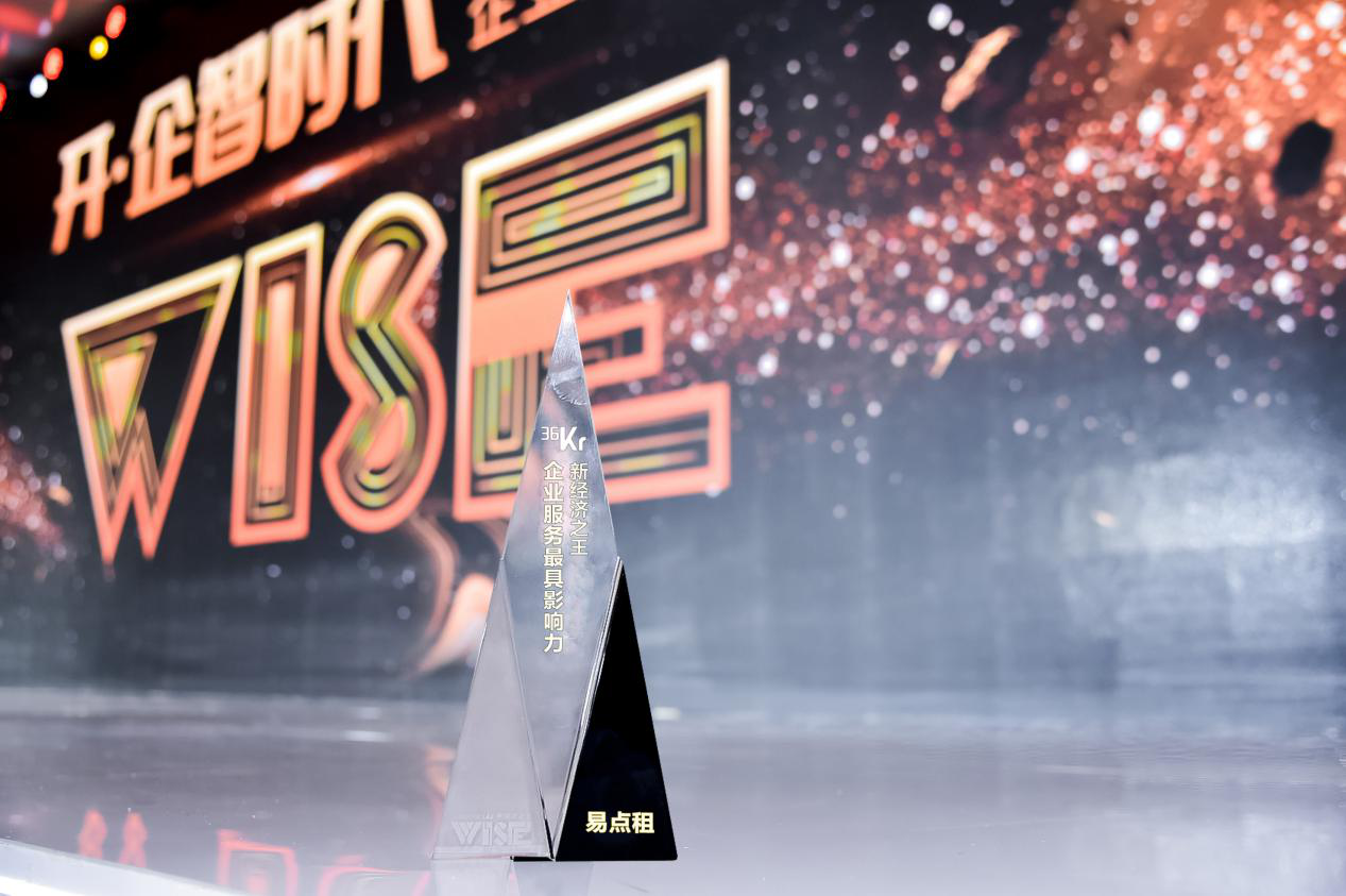 在36氪主办的WISE 2018新经济之王峰会,聚焦新资本、新技术、新信息深度融合下的新经济的模式变革和商业创新。易点租在企业IT租赁服务赛道上用创新思维与极致服务,斩获“企业服务领域最具影响力”及“新租赁&二手经济之王”两个大奖。