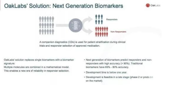 项目方提出了创新解决方案,将多种分子组成生物标记物,取代单一的生物标记物,为整个药物开发过程提供极高的精确度。项目的创新之处在于引入人工智能和机器学习技术,大幅度提升生物标记物的准确度,准确预测响应和非响应者,从现有技术的65%~80%提高到90%以上。
