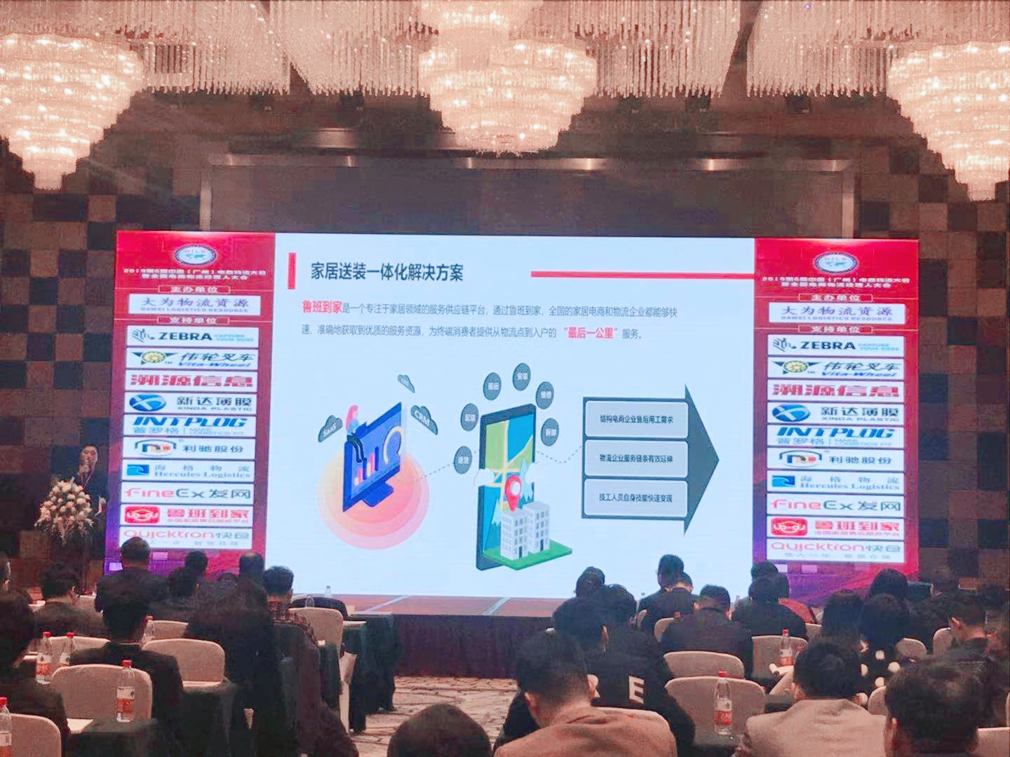 2019年3月8日,由大为物流资源主办的第六届中国电商物流大会在广州翡翠希尔顿酒店成功落下了帷幕。本届大会聚集了来自美团、京东、鲁班到家等行业领先企业的千人队伍共同参会,共商“大电商时代,新零售、新物流”如何突破已有舒适区,实现跨越性的生态新发展。其中,鲁班到家创始人邓崴作为会议受邀演讲人,现场针对“电商与物流企业如何借助服务供应链实现自我赋能”一题,进行了长达30分钟的分享,创新性的减负共赢论点结合满满干货,瞬间点燃现场话题。