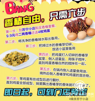 日前,南京苏宁小店在全民焕新节期间,正式上线香椿,2两售价9块9。有意思的是,买香椿,还附赠鸡蛋,香椿炒蛋意外成为春季网红菜。