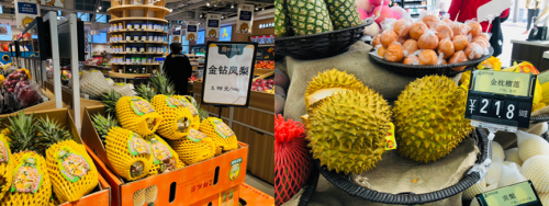 据悉,在全民焕新节期间,苏宁小店金钻凤梨5.98元每斤,泰国金枕榴莲21.8元一斤,价格低口感好,半个月销量均超5万斤。