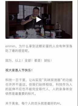 腾讯也不甘示弱,开始研究美食AI功能——“风味探测器”,还请来了《风味人间》导演陈晓卿当产品经理!这种一本正经说瞎话的本事,差点就信了。
