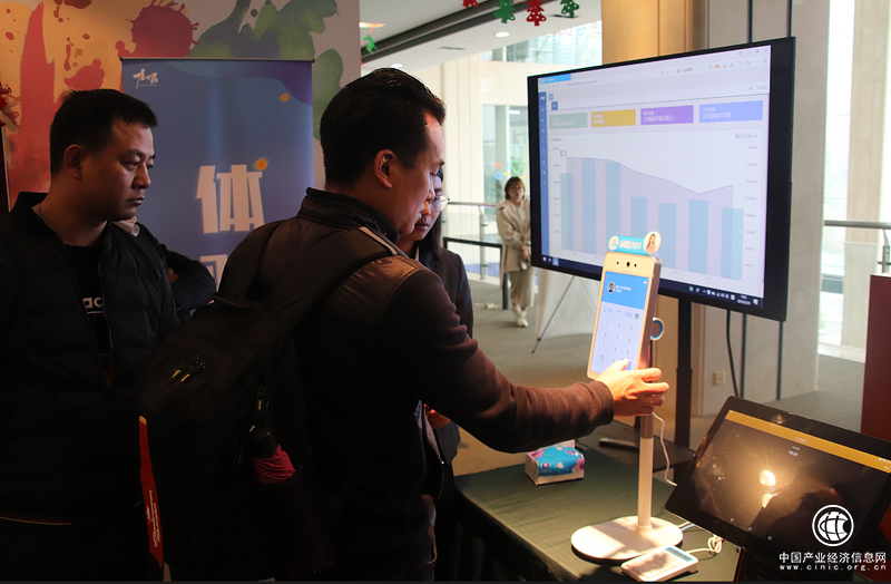 (图为九啸科技3.29刷脸支付产业峰会现场参会者体验刷脸支付)