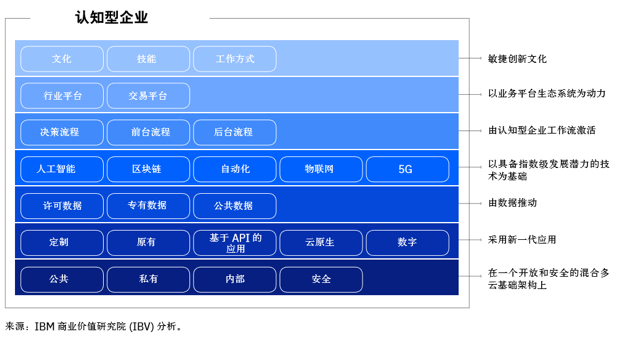 那么到底什么是认知型企业呢?在2019年4月8日,IBM在大中华区发布2019年重点报告《认知型企业:发挥人工智能优势,全面重塑企业——七大成功要素》(以下简称:《认知型企业白皮书》)。IBM大中华区全球企业咨询服务部总经理麦俊彦在发布会上表示,对于企业来说,由外部变革而向内推动的数字化转型是第一步,由内部变革而向外发生的数字化重塑是第二步,数字化重塑是过程、旅途,目标就是成为认知型企业。