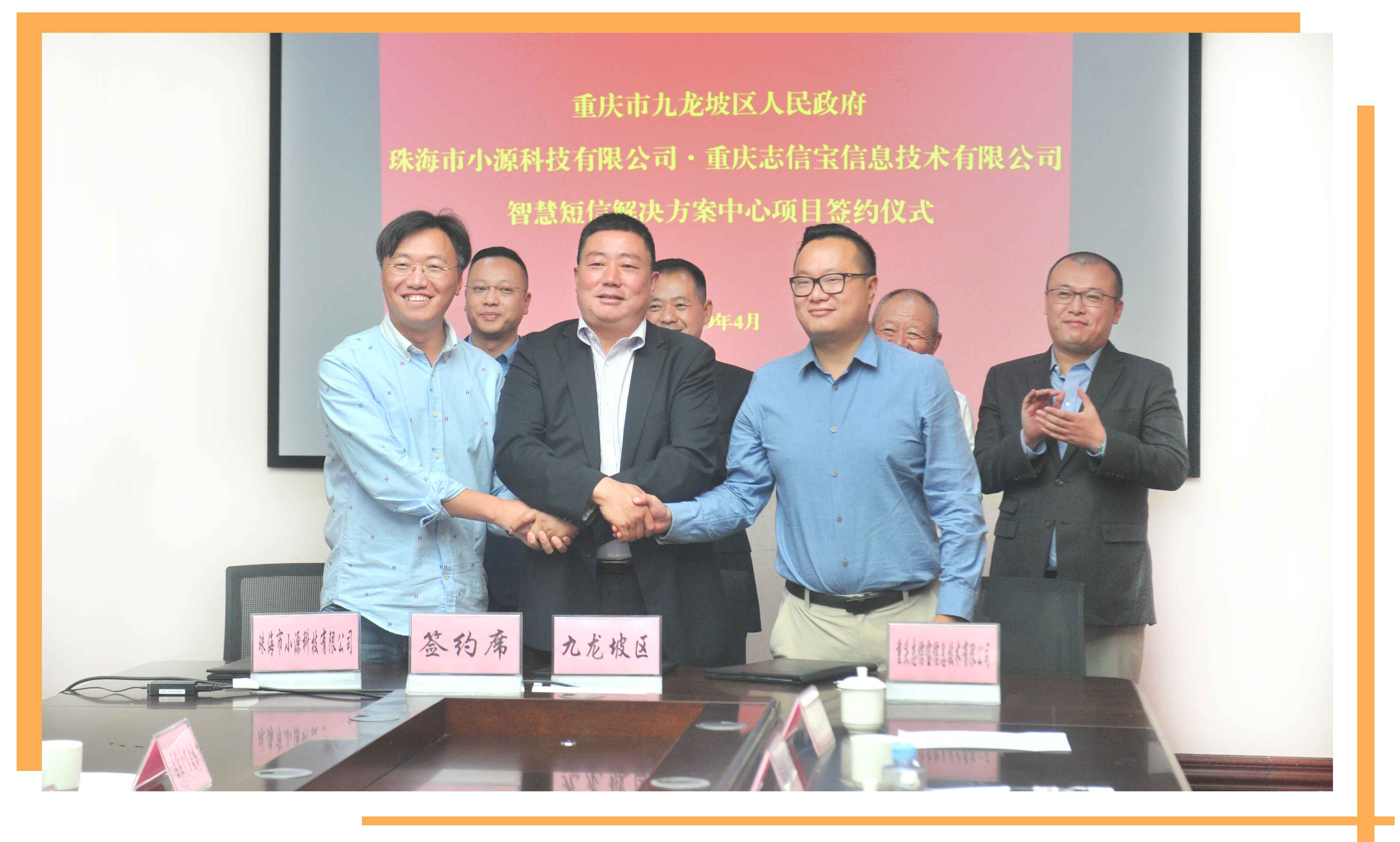 2019年4月18日,重庆市九龙坡区人民政府、珠海市小源科技有限公司、重庆志信宝信息技术有限公司在重庆举行了智慧短信解决方案中心项目签约仪式。