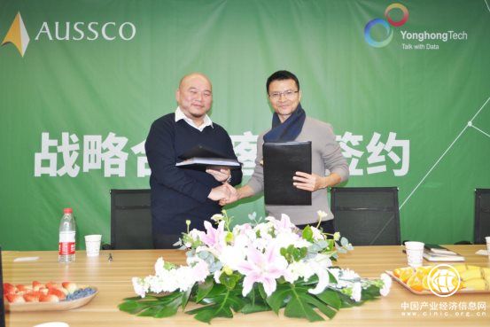 注:永洪科技何春涛(右)与澳迪香港有限公司周凯枫(左)代表公司签署战略合作协议