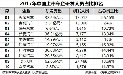 哈弗就是极有代表性的一个。哈弗多年来秉持研发“过度投入”的理念,至今总投入已超157亿,平均每年超过30亿,而且哈弗每年投入依旧不减。2017年《每日经济新闻》公布,哈弗所属的长城汽车,其研发人员占总员工比为26.15%,平均5名员工里就至少有1名研发人员。持续的投入,让它悄然间成为行业的佼佼者。全球8大研发中心的建立,让其聚集了世界汽车领域的顶尖人才,研发领域更是遍及了自动驾驶、新能源等方面。这也保证了哈弗的产品处于行业前列,并有更多的竞争优势。