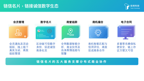 通过区块链赋能实体经济固然前景可观,但是,从现实状况来看,成果并不是很乐观,其主要原因在于区块链作为新事物,还不被众多企业所接受。对于这种情况,蔡明军认为:“企业上链的机制很复杂,绝大多数传统企业并不能理解,也不一定听得懂,但就数字经济的长远发展来看,现阶段的企业上链正处在风口之上,必然不能错过。”同时,他还进一步总结了企业上链对企业自身所提供的助益:“企业上链首先是品牌增信。然后是提升运营效率和资金使用效率。当然如果能完全通证化可以获得流动性溢价。” 对于这种情况,蔡明军在做出详细调研之后,首先,他指出基于可信数字身份的配套企业服务,可以有效地满足企业。例如,国内首家推出的数字身份产品-链信名片APP,企业可以通过自证-互证-公证的去中心化系统,完成可信数字身份映射,拥有个人私钥,完全自主管理数字资产与隐私权限,既不必担心基于区块链底层技术的APP私存、泄露或篡改个人隐私,又可以通过端到端的分布式平台进行商机发布与匹配的可信撮合与管理,同时搭配商业信誉追踪与管理、线上存证与合同签章等个性化服务形成可信商业闭环,高效促进交易服务。