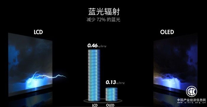 此外,浙江大学徐海松教授多年来对OLED相关的图象质量方面进行研究。他认为,在电视舒适度上,OLED目前的亮度水平符合人眼的舒适、安全性;在图像质量方面,OLED画面细节准确还原,确保极少图象瑕疵或失真,侧面观看时喜好性并未降低,无泛白、漏光等现象。OLED提供了更好的对比度和更低的蓝光含量,所以OLED是非常适合人眼观看的显示技术。