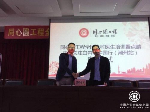 为更好地开展专业的白内障筛查及免费白内障手术救治工作,会上还同时进行了潮州地区贫困白内障患者免费手术定点医院签约仪式。