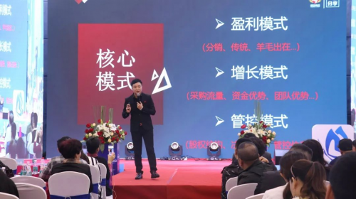 图注:特邀嘉宾80后资本营销鬼才曹一麟先生现场为大家阐述微信社群运营的威力并分享他的创业创富成功经验。