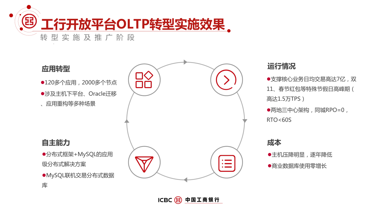 演讲者介绍:林承军,中国工商银行软件开发中心高级经理,多年来一直从事开放平台相关技术研究及实施工作,多次参与工行重点项目的原型技术研究、IT 架构转型及优化提升,在分布式、高可用架构、数据高效访问领域有丰富的实施经验。近年来,牵头 MySQL/分布式数据库团队工作,借鉴和引入业界成功经验,通过自主研发 技术引入,迅速形成基于开源 MySQL 的企业级应用研发能力,初步建立了企业级解决方案,推动工行开放平台 OLTP 数据库转型的实施。