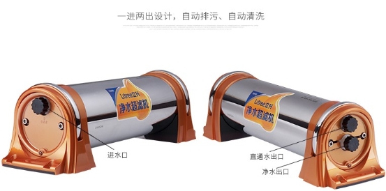 立升超滤膜净水器采用了垂直交叉过滤工艺和一进两出的结构设计,一个自来水进水口,一个自来水直通水出水口和一个净水出水口,过滤的杂质可以通过直通自来水直接排出,避免超滤膜净水器的滤芯脏堵,延长滤芯使用寿命。而且,通过直通自来水口排出的废水可以用来浇花、拖地,做到不废水不费电,节能环保。