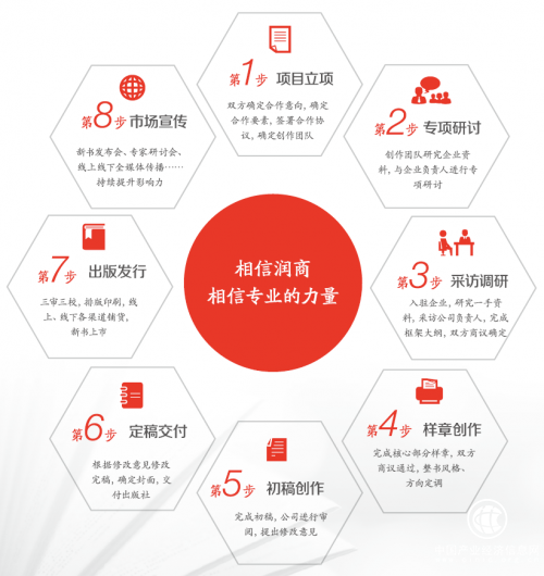 为了聚集团队的全部力量打造精品,润商文化将项目流程切割成项目立项、专项探讨、采访调研、样章写作、初稿创作、定稿交付、出版发行等多个环节,并严密监控每一环节。