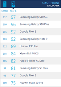 今年上半年三星和华为都分别推出了自己的旗舰机型Galaxy S10系列和华为P30系列,并且在拍摄技术方面都进行了提升。经过专业相机测试机构DXOMark专业评测发现,三星Galaxy S10+获得了后置109分、前置96分(总分205分)的高评分,其中前置摄像头更是超越华为P30 Pro,三星Galaxy S10 5G版本前置和后置摄像头都位列第一,可见三星在拍摄技术方面的实力。