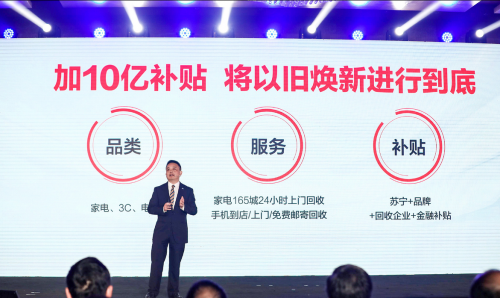 说到以旧换新,不得不提两个月前的全民焕新节,当时,为了响应国家家电换新新政,苏宁易购总裁侯恩龙表示要拿出10亿补贴。这一次,苏宁再推10亿补贴,表示要“将以旧换新进行到底”,再一次成为话题热点。