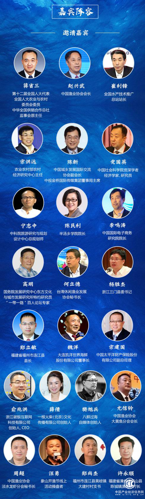 围绕这些热点话题,本次论坛在内容设置、嘉宾邀请和活动形式上进行了精心策划。30日下午的领导致辞与嘉宾主旨演讲活动中,将有全国人大农业与农村委员会委员、中华全国供销合作总社监事会原主任蒋省三、中国渔业协会会长赵兴武、全国水产技术推广总站站长崔利锋、中国城乡发展国际交流协会副会长陈新、中国社会科学院资深学者、经济学家、研究员党国英、中科院旅游研究与规划设计中心总规划师宁志中、中国国际电子商务中心研究院院长李鸣涛、大连凯洋世界海鲜股份有限公司董事长魏洋、中国太平洋财产保险股份有限公司副总经理宋建国等领导、专家、企业家与会,为来宾奉上精彩的致辞或主旨演讲。