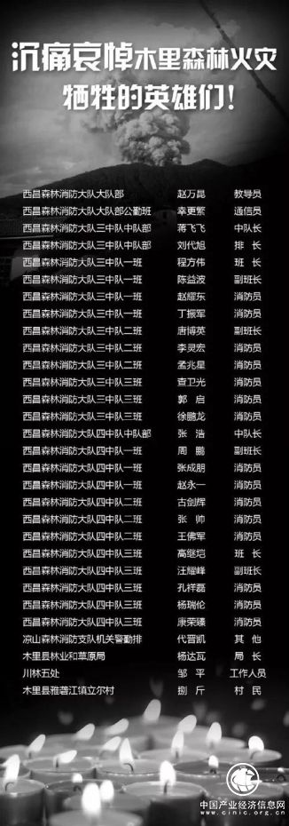 3月30日17时,四川省凉山州木里县境内发生森林火灾。3月31日下午,扑火行动中突发林火爆燃,30名扑火人员失联,4月1日晚,经全力搜救,30名失联扑火人员全部找到,27名森林消防队员和3名地方扑火人员牺牲。27名消防员总,一名80后,24名90后,2名00后,3位地方扑火人员全为70后。牺牲的不仅是30个英雄,更联系着30个家庭。其中,有一人来自湖北:汪耀峰,1993年9月生,来自湖北省孝昌县花园镇凉山州森林消防支队,西昌大队四中队三班,副班长。