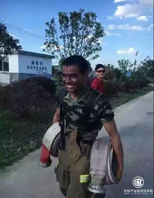 温州龙港某中队消防战士张晓方的照片他刚刚成功处置了6起火灾露出胜利的憨笑。