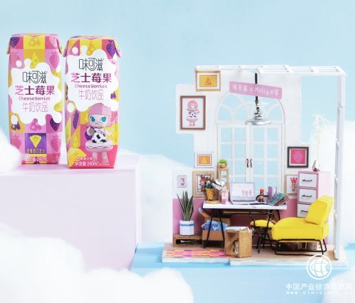 当下年轻人对美学的追求已不再局限于玩具领域了。这也让曾经更注重实用性的生活用品、饮料食品等大众消费产品都开始融合潮玩元素,在全社会领域掀起了真正的中国式审美新潮流。如在前不久,伊利旗下高端风味奶品牌味可滋就携手POP MART泡泡玛特旗下超人气潮玩IP Molly推出新品——味可滋芝士莓果Molly之家特别版套装,以此来吸引更多年轻消费者。