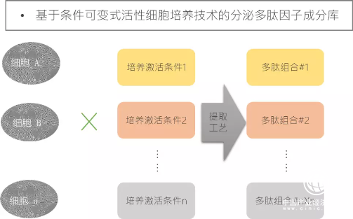 第一大核心竞争力——分泌型天然多肽因子库。研发平台通过条件可变式的活性细胞培养技术构建业内唯一的天然分泌多肽因子成分库,目前库中种子细胞储备120份,形成超过800种天然分泌型多肽成分组合。
