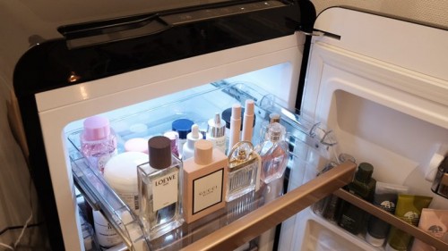 小吉化妆品冰箱的内部设计,同样值得被夸赞。普通大冰箱大多是采用固定隔板将冰箱内部空间区隔开,而小吉化妆品充分考虑到了女性用户朋友时常拿取化妆品、护肤品的需求,运用了导轨式设计,抽出和推进都很轻松。另外下方还设有专门的密封存储区域,适用于一些开封后高档护肤品密封存储。侧边则有专门的口红、指甲油置物架,用于置放小型物品,可以说是相当的贴心了。