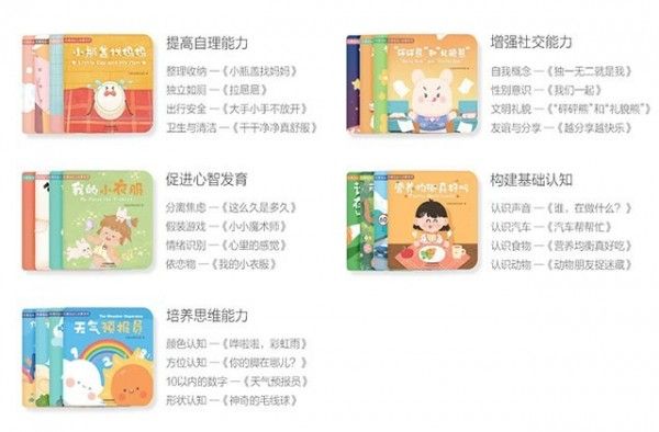 米兔点读笔配套的原创启蒙绘本不同于传统点读内容单一认知能力培养,从儿童发展里程碑中提取5大发展维度,按能力划分课程教学,全面提升孩子认知、语言、心理、社交、自理5大核心能力,培养孩子的高情商。