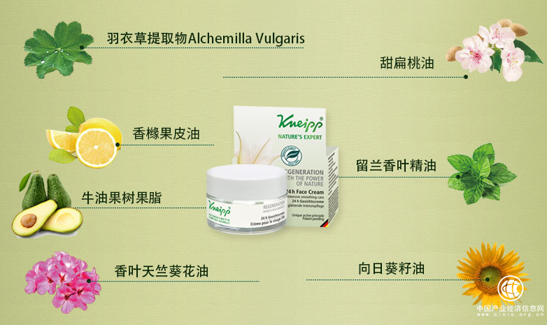 Kneipp克奈圃再生平复保湿面霜糅合了多种天然植物精油,多重功效,全面呵护面部肌肤。其中包括了羽衣草提取物、甜扁桃油、香橼果皮油、留兰香精油、牛油果树果脂、香叶天竺葵花油以及向日葵籽油。能够舒缓面部肌肤,调节面部肌肤油脂分泌,给肌肤基底补充水分,抚平细纹,焕发新生。羽衣草提取物早在中世纪就已经被人们发现,其对滋养肌肤,持久保湿、给予肌肤平滑触感有很好的功效。
