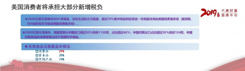 据测算,约9成的税负可能由美国消费者承担。最近一段时间,美国的一些权威机构和IMF的报告都强调,这一次美国对于中国销往美国的2000亿产品加征了10%的关税,它的负担几乎是由美国的进口商和美国的消费者来承受。