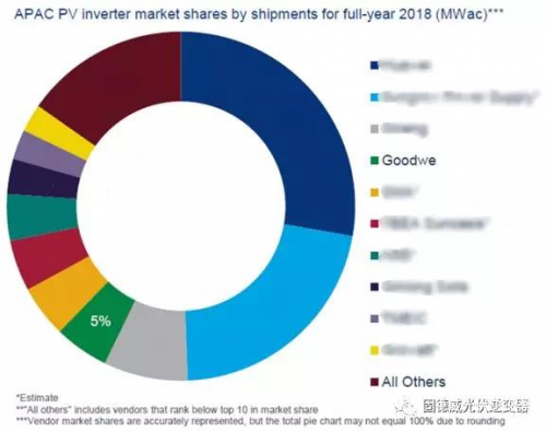 在亚太地区,固德威占据了5%的市场份额,成为第四大供应商,该地区拥有中国、印度两大超级市场以及澳大利亚等成熟光伏市场,取得第四名的优异成绩实属不易!