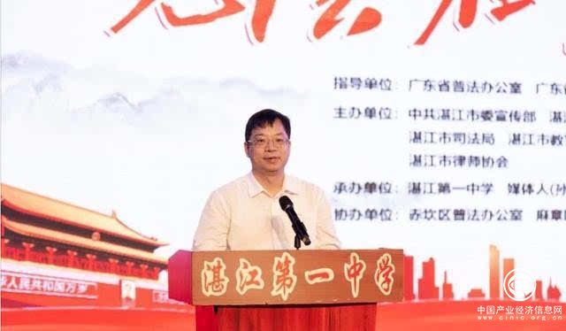 为大力弘扬宪法精神,进一步激发青少年学生宪法学习热情,根据省普法办、省司法厅、省教育厅、团省委等部门关于组织落实"宪法在我心中"万场法治宣传进校园活动的工作部署,5月31日上午,由广东省普法办公室、广东省司法厅指导,中共湛江市委宣传部、湛江市普及法律常识办公室、湛江市司法局、湛江市教育局、共青团湛江市委会、湛江市律师协会主办的湛江市"宪法在我心中"法治宣传进校园活动启动仪式暨"宪法教育大课堂"师资培训班在湛江第一中学举行。省司法厅巡视员张荣辉、市政府副市长崔青、市政协副主席钟胜保,以及市委宣传部、市普法办、市司法局、市教育局、团市委、市妇联、市律师协会等单位的有关领导,市普法成员单位分管领导,各县(市、区)司法局分管领导和普法与依法治理机构人员,市"七五"普法讲师团成员代表,各县(市、区)"七五"普法讲师团成员代表,教育系统培训对象及湛江第一中学的师生共1300余人参加。