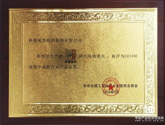 6月3-5日,由中华全国工商业联合会医药业商会主办的“2018年度中国医药行业最具影响力榜单暨第十一届中国医药产业发展高峰论坛” 在济南召开,在4日揭晓的榜单中,仲景牌六味地黄丸获全国优质中成药第一批综合评价金奖品牌。