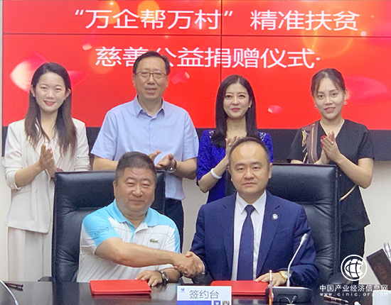 同一天,天津市委统战部副部长、市工商联党组书记、常务副主席王禹,天津市光彩事业促进会办公室主任李镭一行来访天九总部,尚敬龙、袁宁等集团领导热情接待。双方进行了亲切会谈,王书记对天九共享积极参与精准扶贫,并为天津精准扶贫捐款100万元的大爱精神表示高度赞赏和感谢,现场见证捐赠仪式。