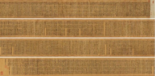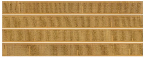 备注:南京文物公司旧藏。写经四段,由十竹斋装裱一体。上世纪70年代入藏十竹斋,并被文物系统定为国家一级文物,手卷上带文物公司老签。