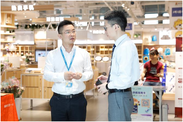张曙刚(左)与施建军(右)参观苏宁小店。