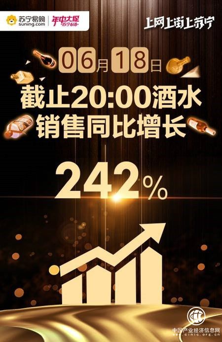 还有和夏天最搭的酒水,截至6月18日20:00,苏宁平台的酒水销售同比增长242%,饮酒助兴是夏天少不了的主题。在所有的酒水中,洋酒同比增长最多,达到了386%,马爹利、人头马、杰克丹尼位列前三;中国特色的白酒也不甘落后,以286%的销售同比增长紧跟洋酒之后,茅台、五粮液、洋河摘得金银铜。