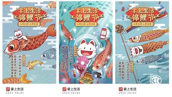 众所周知,5月底,各大电商平台便开启618大战,“掌上生活锦鲤节”活动时间为6月10日—30日,此时间段设置既借势618电商大战不断加强的社会关注度,又能形成错位竞争,并占位后半月营销空档,选取巧妙。更为重要的是,此时间段与“回血”消费者的理念十分契合。