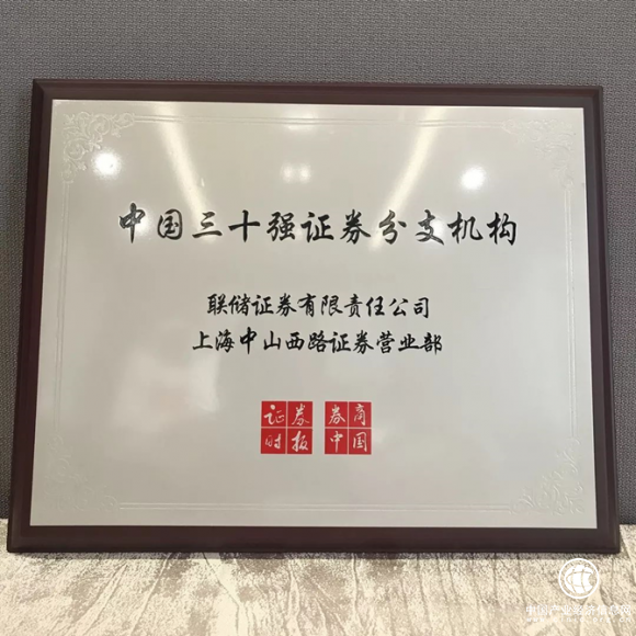 联储证券上海中山西路证券营业部获“中国区三十强证券分支机构”