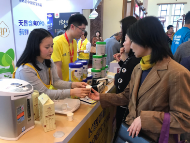 飞鹤展位前消费者纷纷品尝飞鹤产品