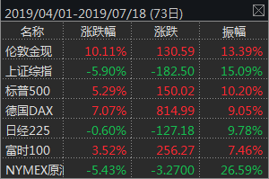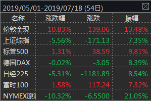 在经济增长内需疲弱和外需充满不确定性的情况下,美联储向市场释放了降息信号。7月13日美联储于国会听证会上发表货币政策证词,大致的意思是当前就业市场并未过热,不足以支撑通胀回升到2%的目标区间,同时表达了通胀疲弱和经济前景偏弱的担忧,将采取适当扩张政策促进经济扩张。芝加哥期货交易所的国债期货隐含概率显示,7月31日美联储降息概率维持在100%,9月18日再次降息的概率超过70%。