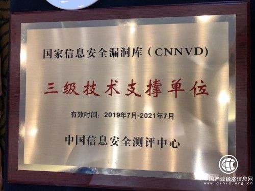 2019年7月26日,国家信息安全漏洞库(CNNVD)技术支撑单位2018年度工作总结大会在北京召开。会上,杭州木链物联网科技有限公司被授予“三级技术支撑单位”。