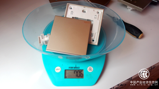 将开关上的塑胶件拆解进行称重:开关塑胶件重量达到了70.6g,用料十足 。