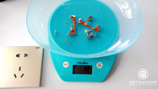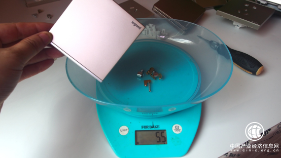 用料方面,去掉所有金属件之后,只称取塑胶件的重量,包括保护门,罗格朗逸景插座测试结果为58.8g 。