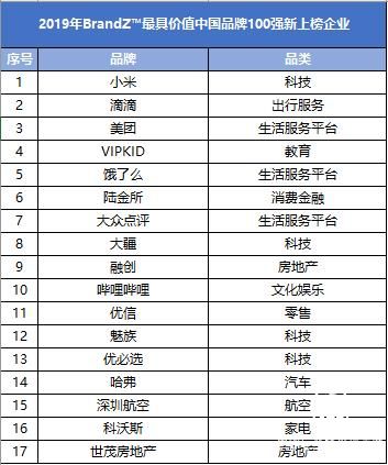 最具价值中国品牌百强17家新上榜企业名单