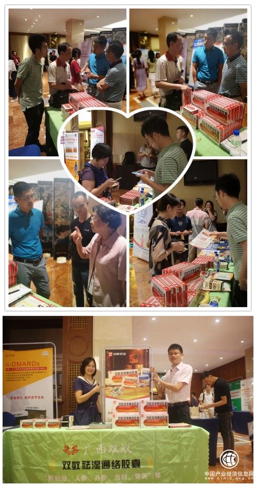 在会场双蚁药业的展台边,不时有参会的专家医生朋友过来了解特色产品双蚁祛湿通络胶囊。