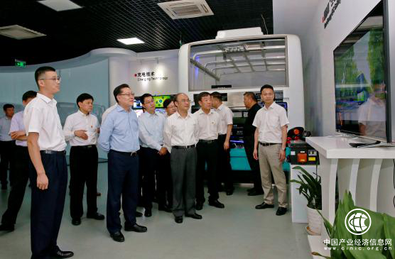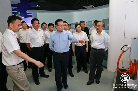 全国人大常委会副委员长王东明(前排左二)询问充电技术相关情况