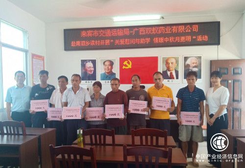 2019年9月11日,来宾市交通运输局总工程师宁勇与爱心企业广西双蚁药业有限公司工会主席程敏光带领干部员工再次到兴宾区南泗乡读村村委开展“党旗领航,机关联企助村”之“关爱慰问与助学,情暖中秋月更明”活动。