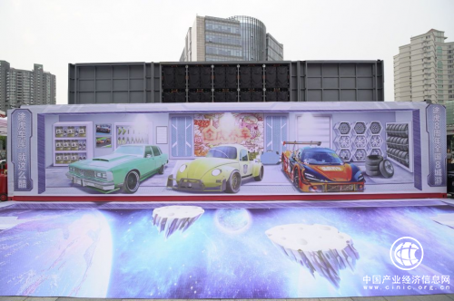 途虎养车介绍,周年庆花车箱体为约12.5米长集装箱,车厢内部空间约28平方米,车厢外部可扩展为约25平方米的折叠舞台,并配备10 平方米的LED屏幕。